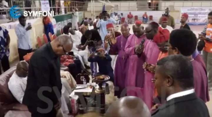The video, which circulated widely on social media, shows the bishops standing before Peter Obi, offering prayers and declaring: