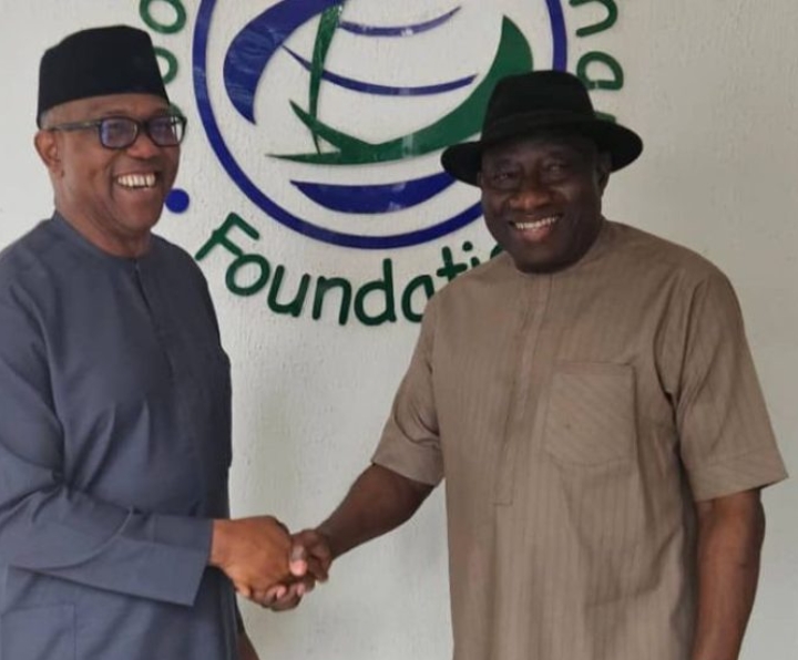 Former presidential candidate and a leading chieftain of the African Democratic Congress (ADC), Peter Obi, is currently in a closed-door meeting with former Nigerian President Goodluck Ebele Jonathan in Abuja.