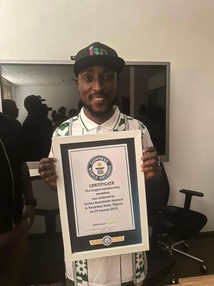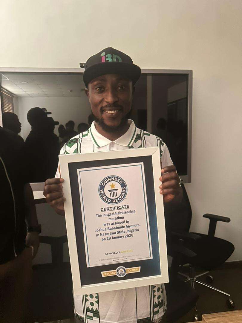 Nigerian barber and small scale businessman, Joshua Babatunde Aiyenuro, has set a new Guinness World Record as the holder of the longest professional barbering marathon.