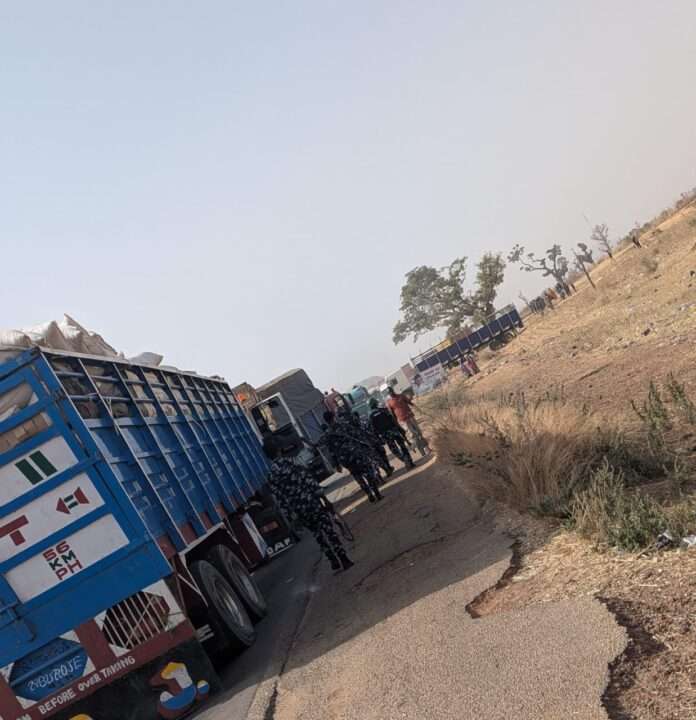 Truck drivers on Friday mounted a roadblock on the busy Bauchi–Jos highway at the Miri axis of Bauchi metropolis in protest after a colleague’s truck tyre was allegedly damaged by revenue enforcement agents.
